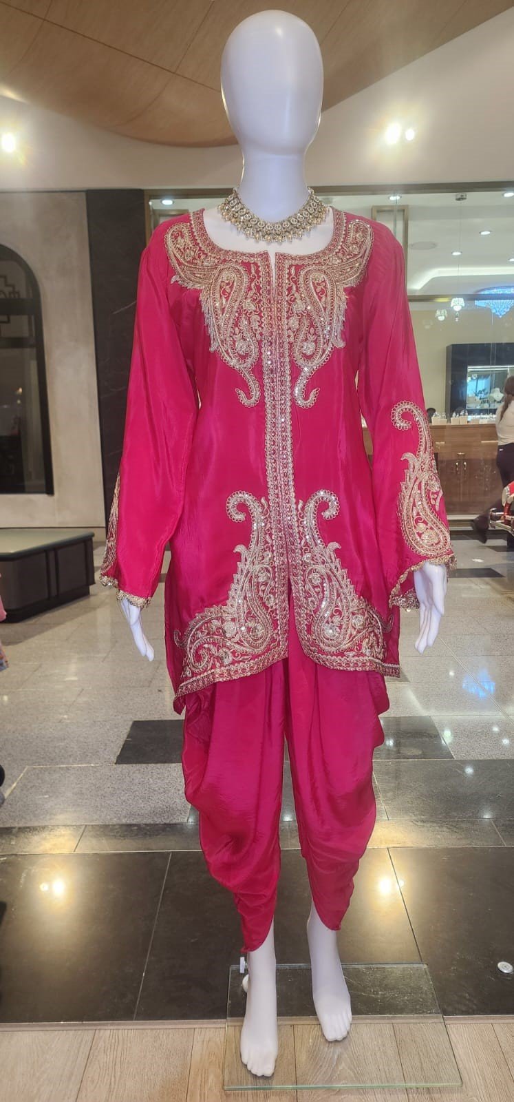 Chinnon Dhoti/Tulip Pant and Short Kurti With Zari Work