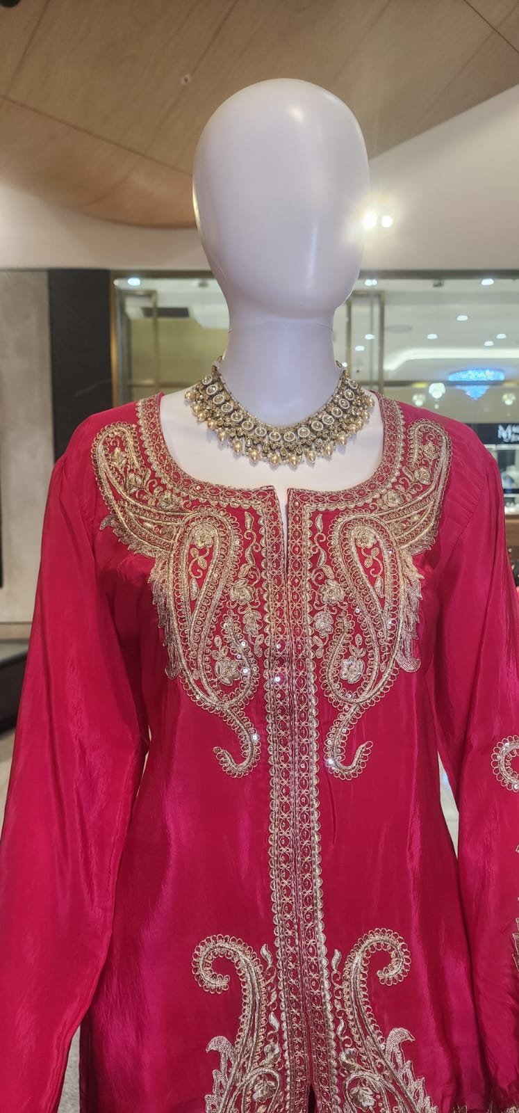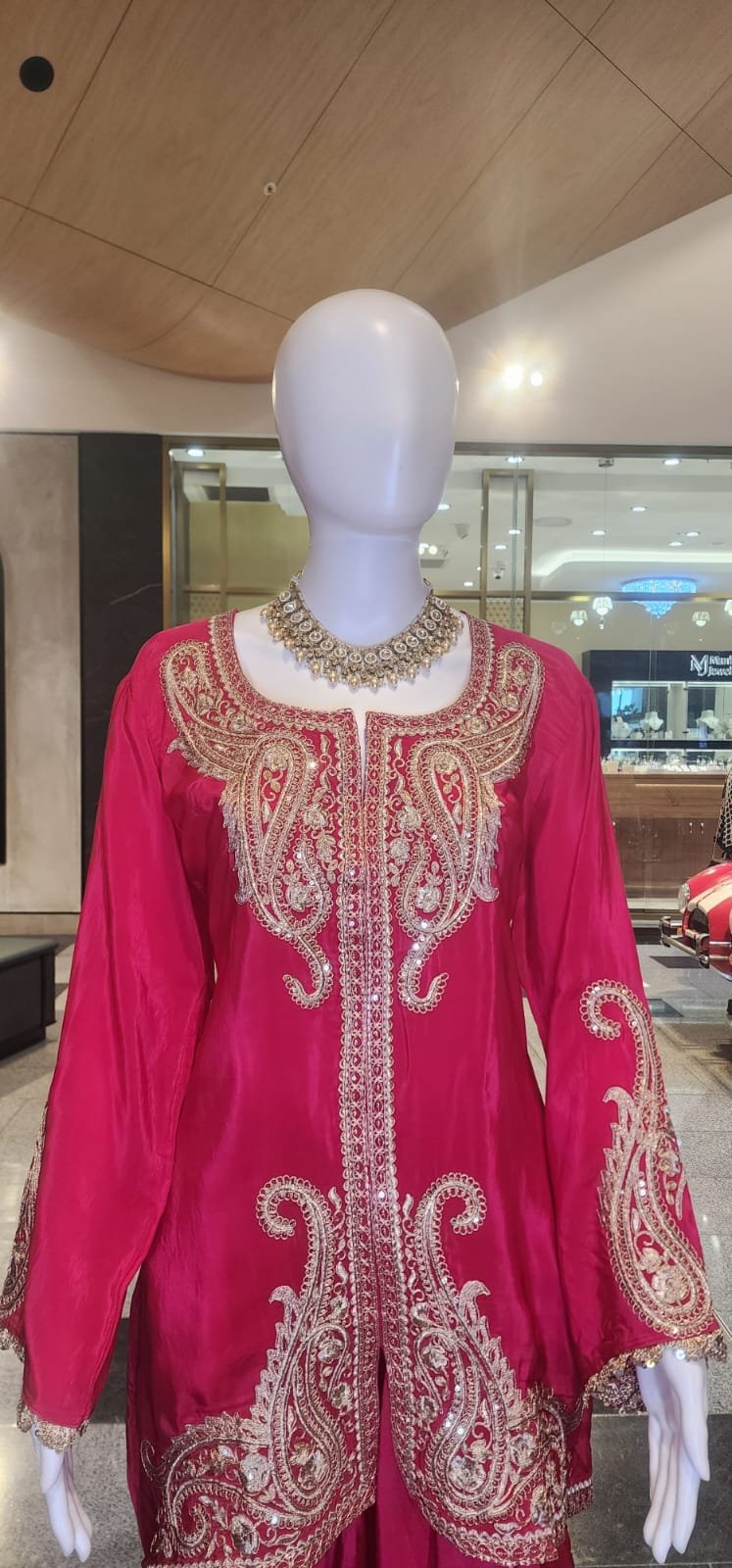 Chinnon Dhoti/Tulip Pant and Short Kurti With Zari Work.