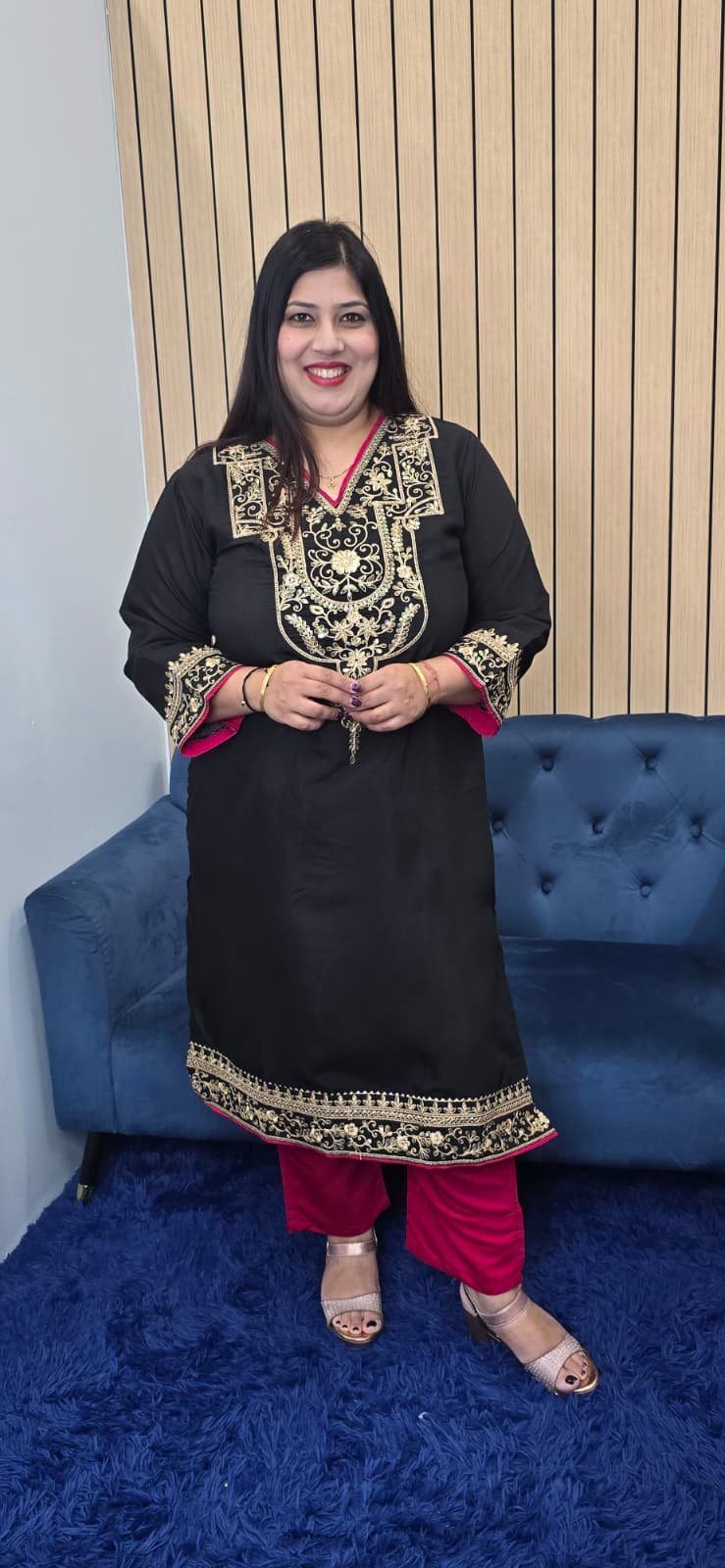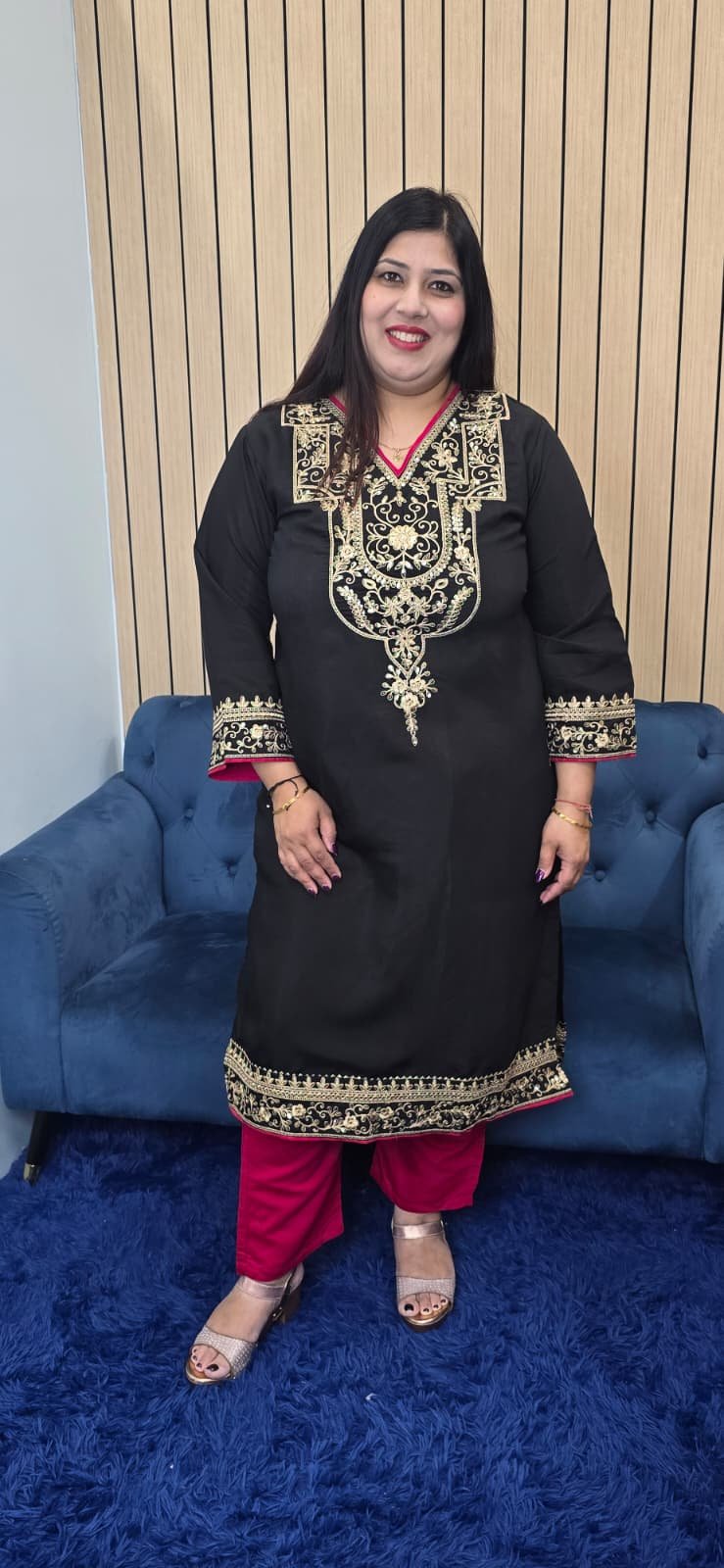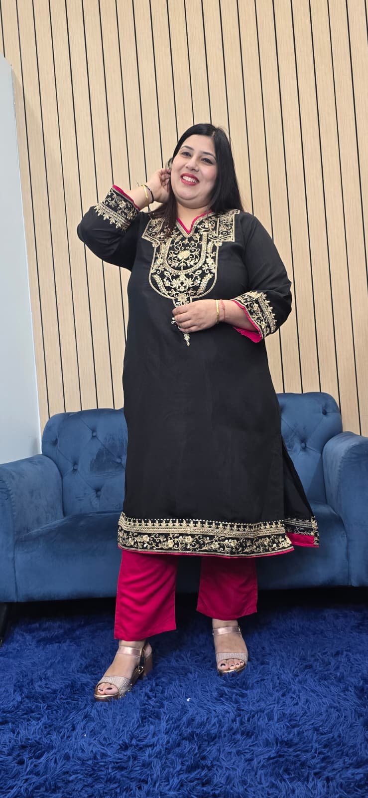 Black Pink Combination Cord Set/Kurta Set with Zari Work with complimentary Potli