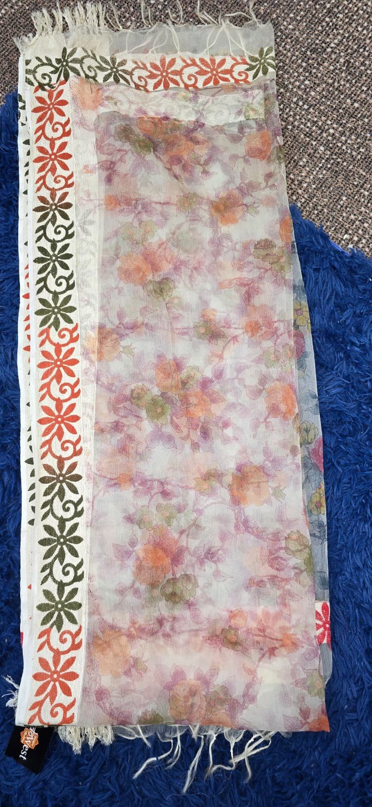 Beautiful Floral Printed Organza Dupatta with Tassels.