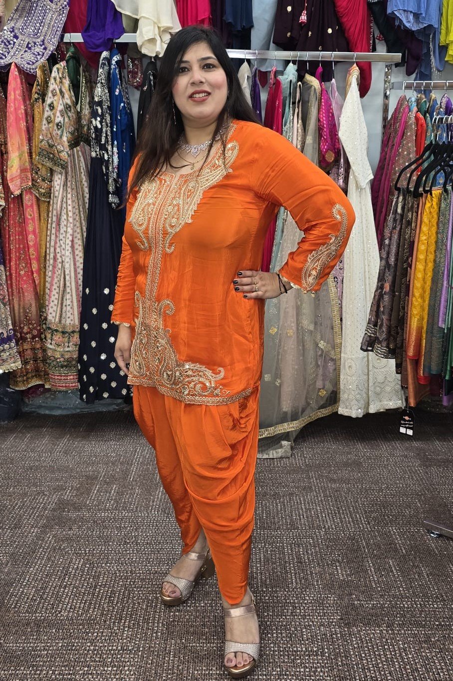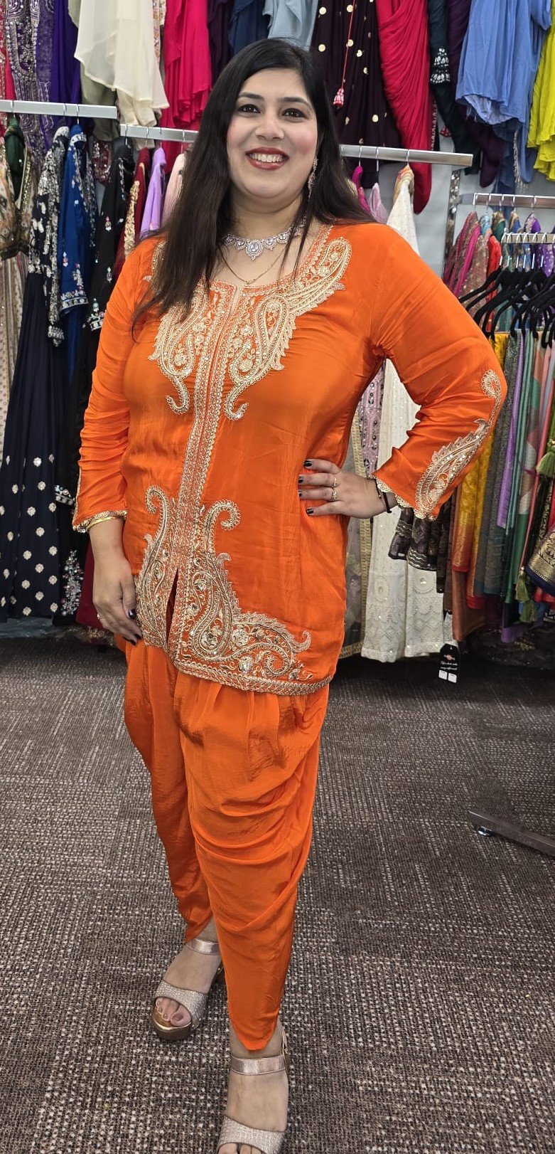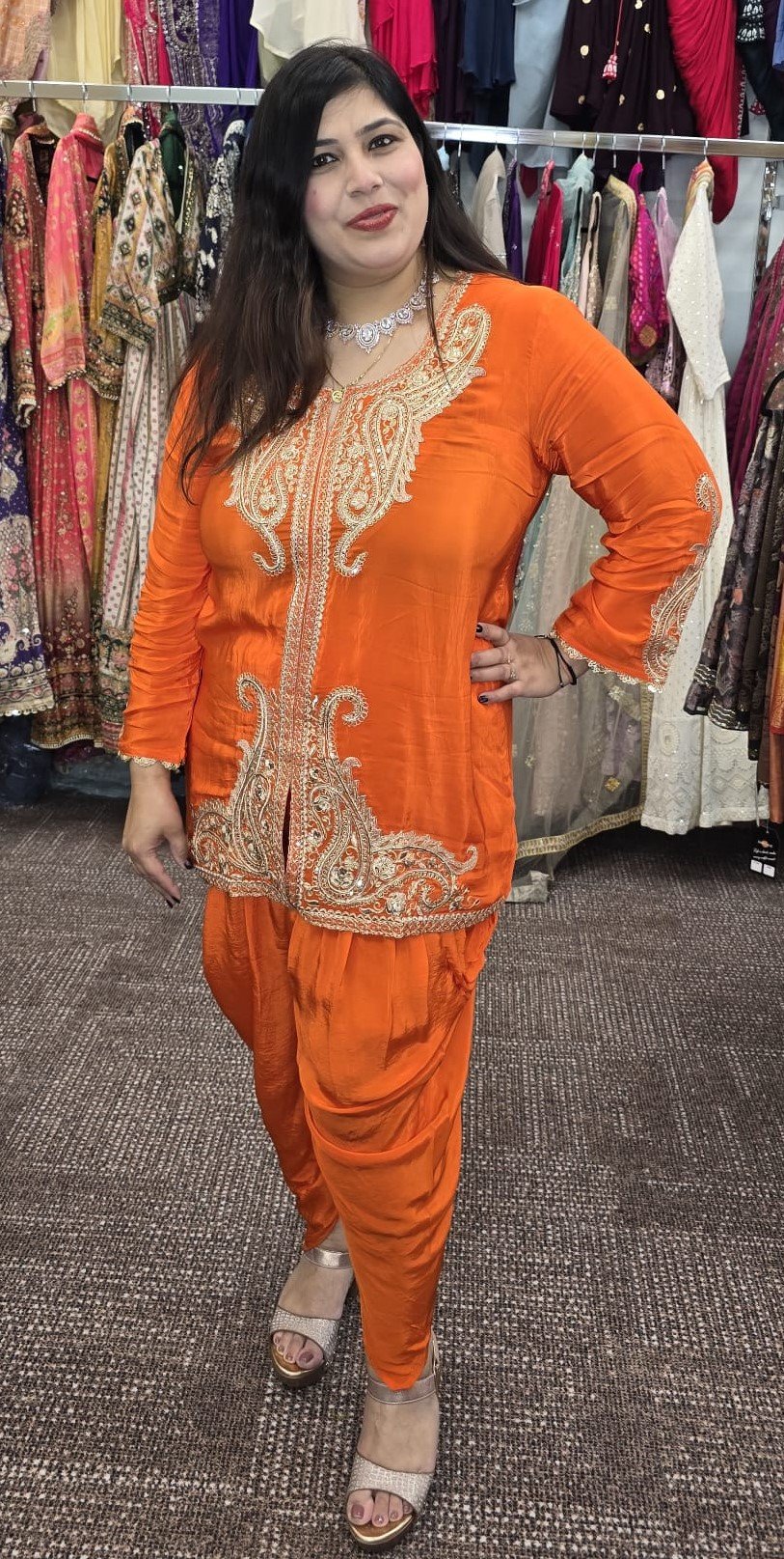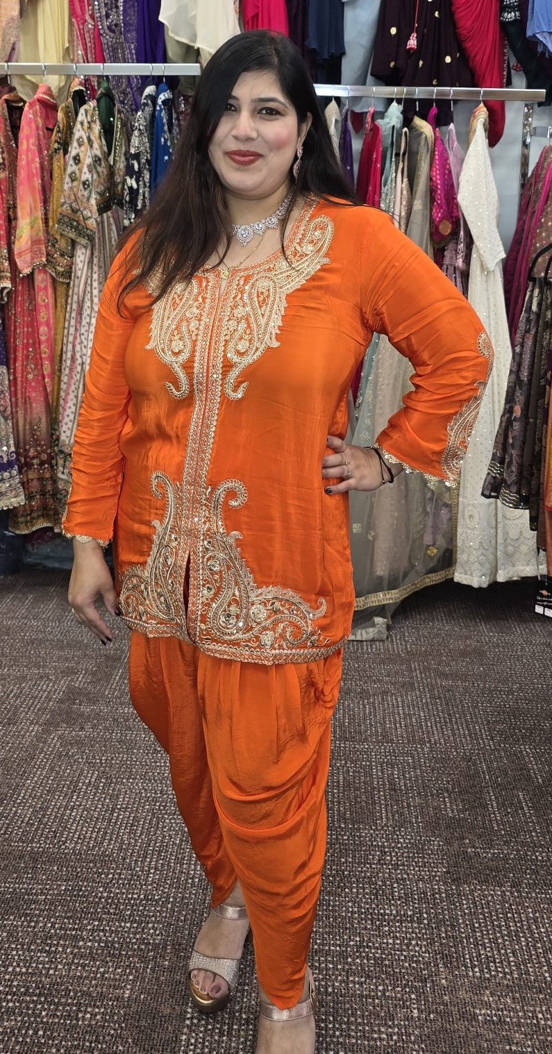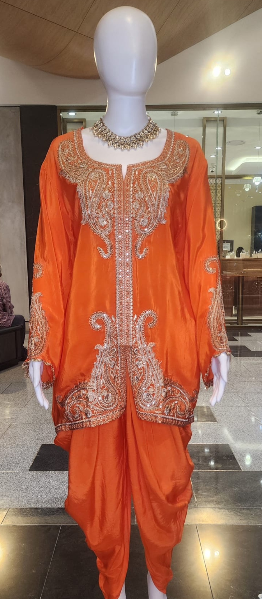 Chinnon Dhoti/Tulip Pant and Short Kurti With Zari Work