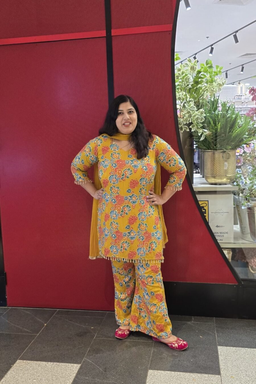 Bell Bottom Palazzo Suit in Floral and Sequence Work